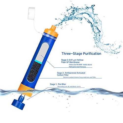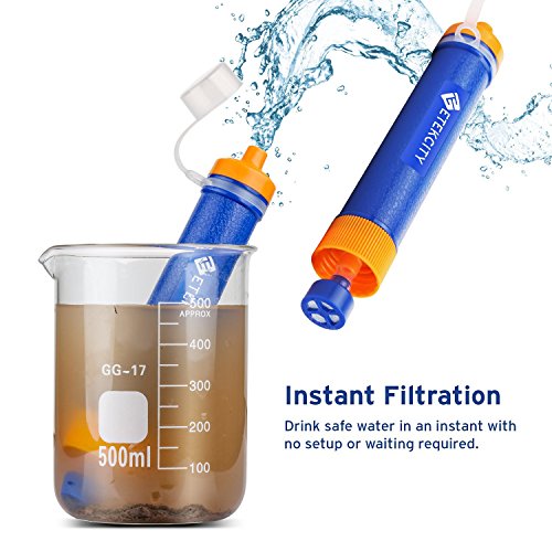 This water filter straw is ideal for emergency and outdoor use. Safely drink up to 1,500 liters of water from nearly any lake, river, spring, well or even rainwater with up to 4 different uses including filter extension, portable water storage, and prefiltration. The Personal Water Purifier by Etekcity filters 99.9999% of colibacillus, legionella, heavy metal ions, remained chlorine, VOC, organic and insect contaminant.