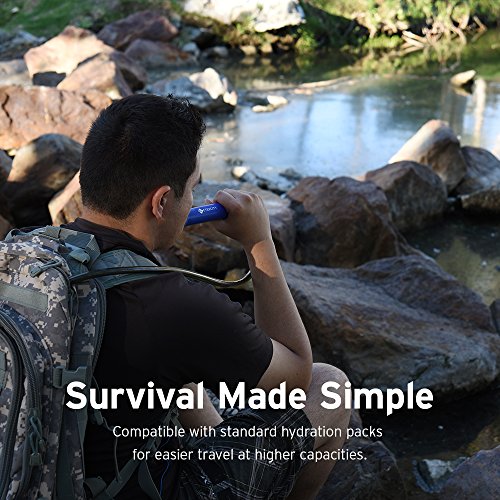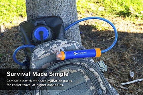 Hydration Reservoir Compatible! Take your outdoor explorations to the next level with the Etekcity Personal Water Purifier. You can hook your purifier to a water pouch and fill the pouch with the available water, even if it isn't clean. Just attach the purifier straw to the hydration backpack you already own and drink water from lakes, ponds, rivers and streams . Foldable Water Bag Portably designed to carry safely filtered water on-the-go with the foldable water bag, making it ideal for any camper or outdoors traveler in areas where water is scarce.