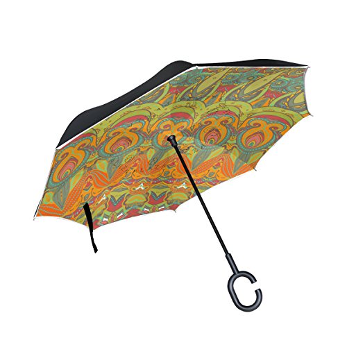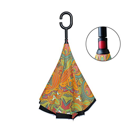 (AHOMY)/Accessories/Umbrellas/DIRECT FROM USA/AHOMY Africa Art Large Double Layer Inverted Umbrella Windproof UV Protection With C-Shaped Han...