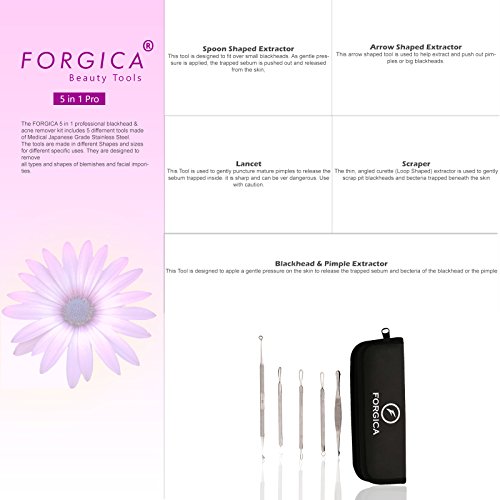 Forgica Spoon Shape Tool designed to fit over small blackheads. As gentle pressure is applied, the trapped sebum is pushed out and released from the skin