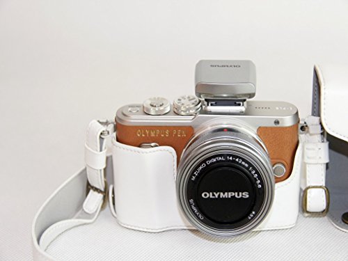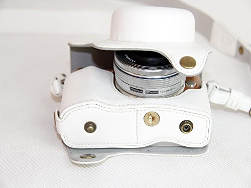 SundayZaZa Unterseite-Offnungs-Version Schutzender PU-lederner Kamera-Kasten-Beutel Fur Olympus PEN Lite E-PL8 EPL8 mit 14 - 42mm EZ F3.5-5.6 Objektiv mit Bugel-Gurt und Speicherkarten-Kasten