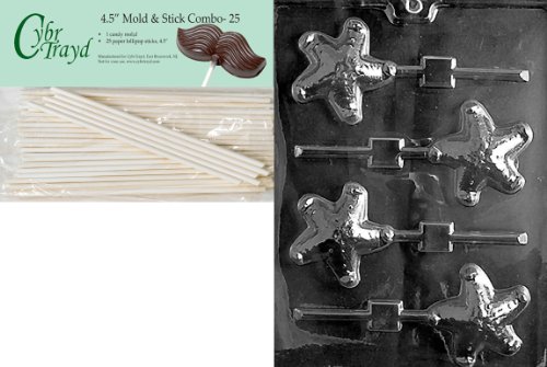 Cybrtrayd 45St25-N040 Starfish Lolly Nautical Chocolate Candy Mold with 25-Pack 4.5-Inch Lollipop Sticks