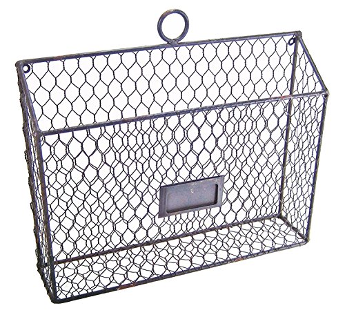 Rustic Country Style Chicken Wire Metal Wall Pocket Organizer File Holder