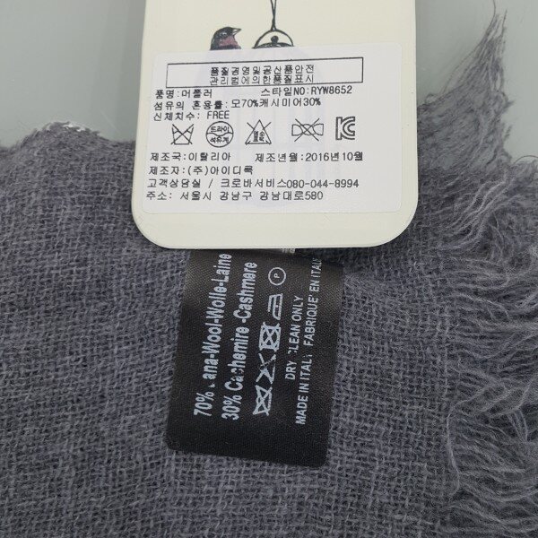 이태리수입상품. 캐시미어30% 울70%의 혼용으로 가벼우면서 볼륨감있게 코디할 수있는 머플러입니다~