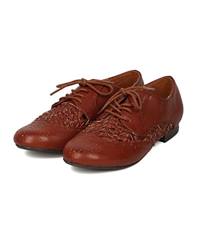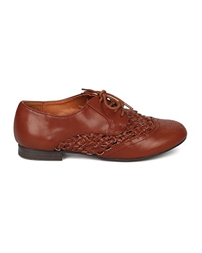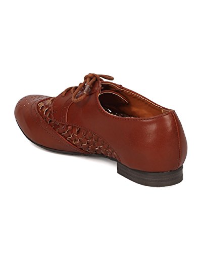 Women Leatherette Weaved Oxford - Casual, Preppy, Office - Lace Up Oxford - GE71 By Wild Diva