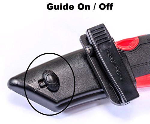 Modern Box Cutter, extra tape cutter at back, dual side edge guide, 3 blade depth setting, 2 blades and holster - Red Color 2000