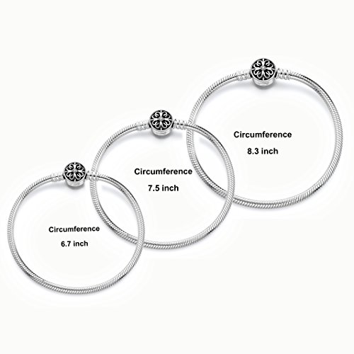 Standard 3mm Chain. Length: 6.7 / 7.1/ 7.5 / 7.9/ 8.3 Inches. Weight: 0.5 oz.t. Compatible with most charms charm brand, such as Pandora charms, Troll, Chamilia, Kay, Carlo Biagi, and so on. Light Weight and Comfortable.