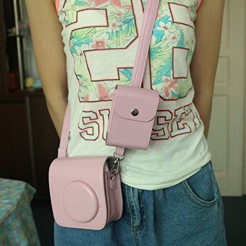 Unique Design: hold about 50 photos, or one pack of film (10 sheets) and more photos, Press-Botton on the bag allows you to hang it to instax camera case's strap