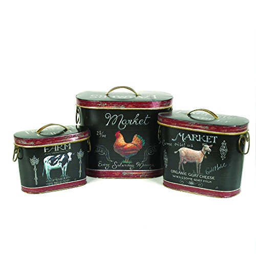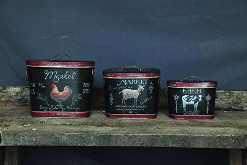 Creative Tin Containers with Lids and Farm Animal Images, 3-Pack