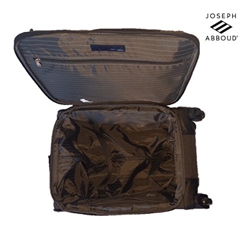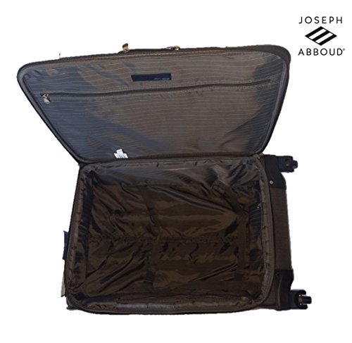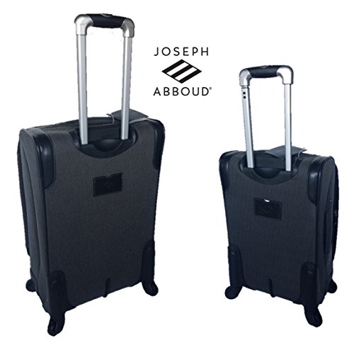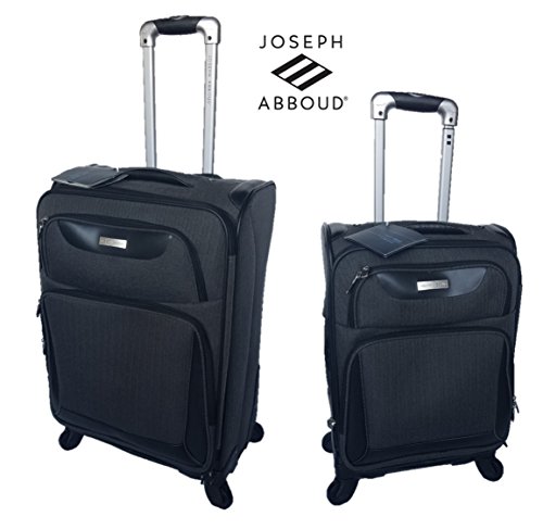 Product Description This 2-Pc Joseph Abboud luggage set is made of luxurious and durable herringbone material. The bags feature fully lined interiors with mesh pockets and zippered lid pockets for increased organization. Signature hardware accents the fabric. Locking push button trolley handle guides around the mag wheels. Expands for added packing capacity. Includes 20" carry-on spinner and 24" trolley spinner. 0