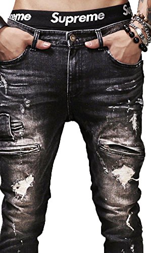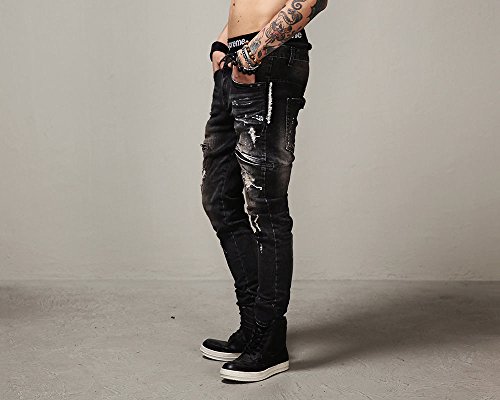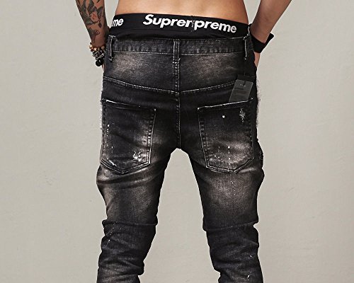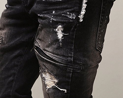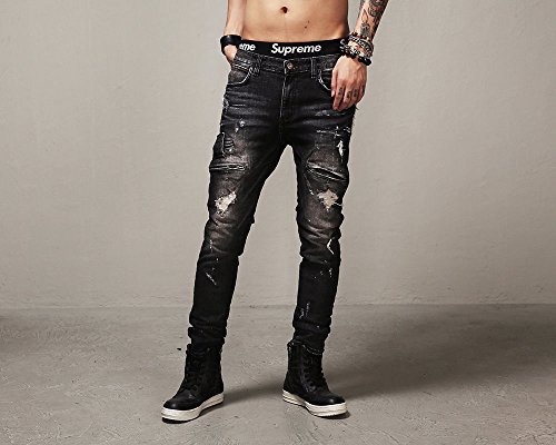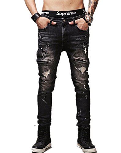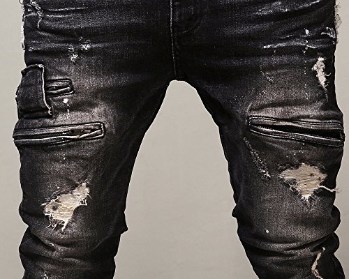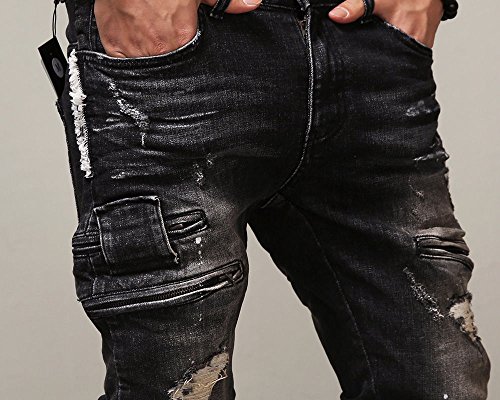 -. Title : Krralinlin Men's Slim Fit Black Stretch Distressed Ripped Skinny Biker Jeans
