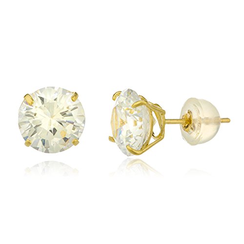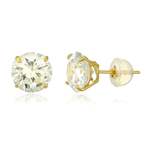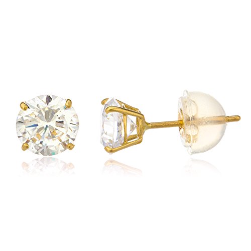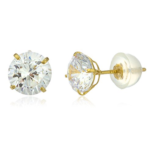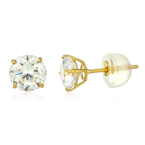 14k Yellow Gold Round Basket Setting Cz Stud Earrings with Silicone Back (7 M..