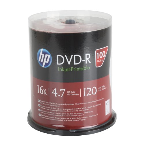 HP DVD-R 4.7GB 16X White Inkjet Printable 100 Pack in Spindle
