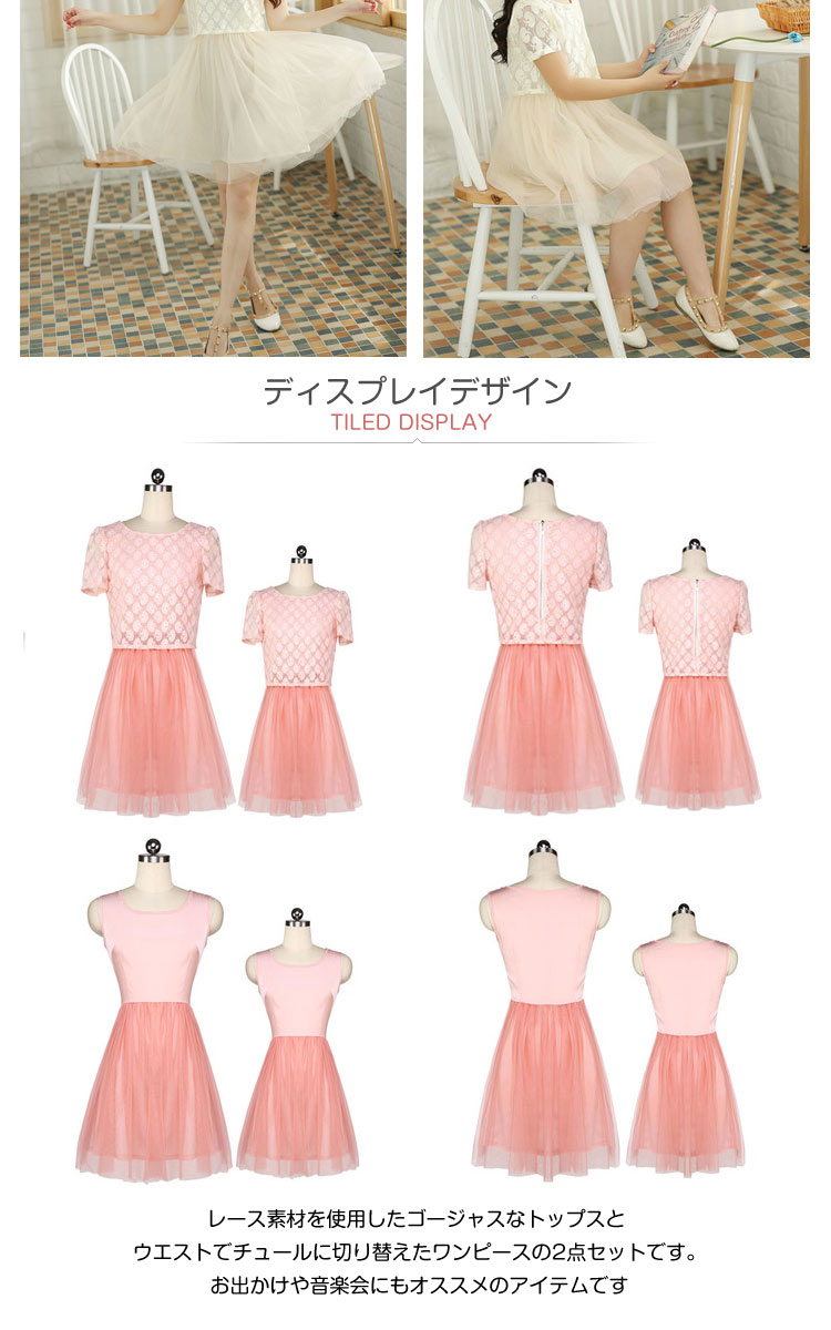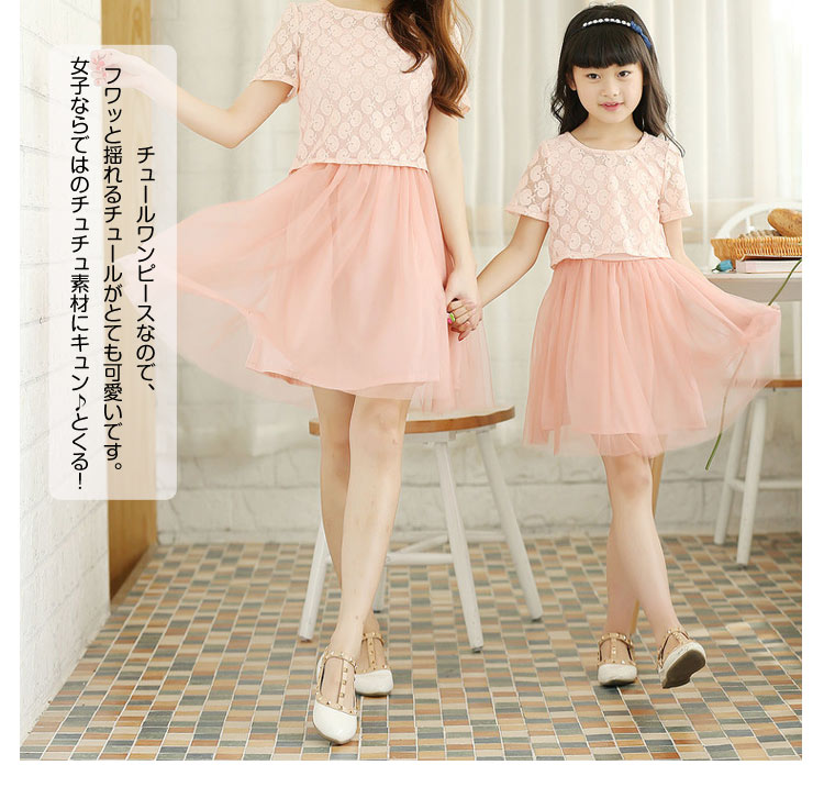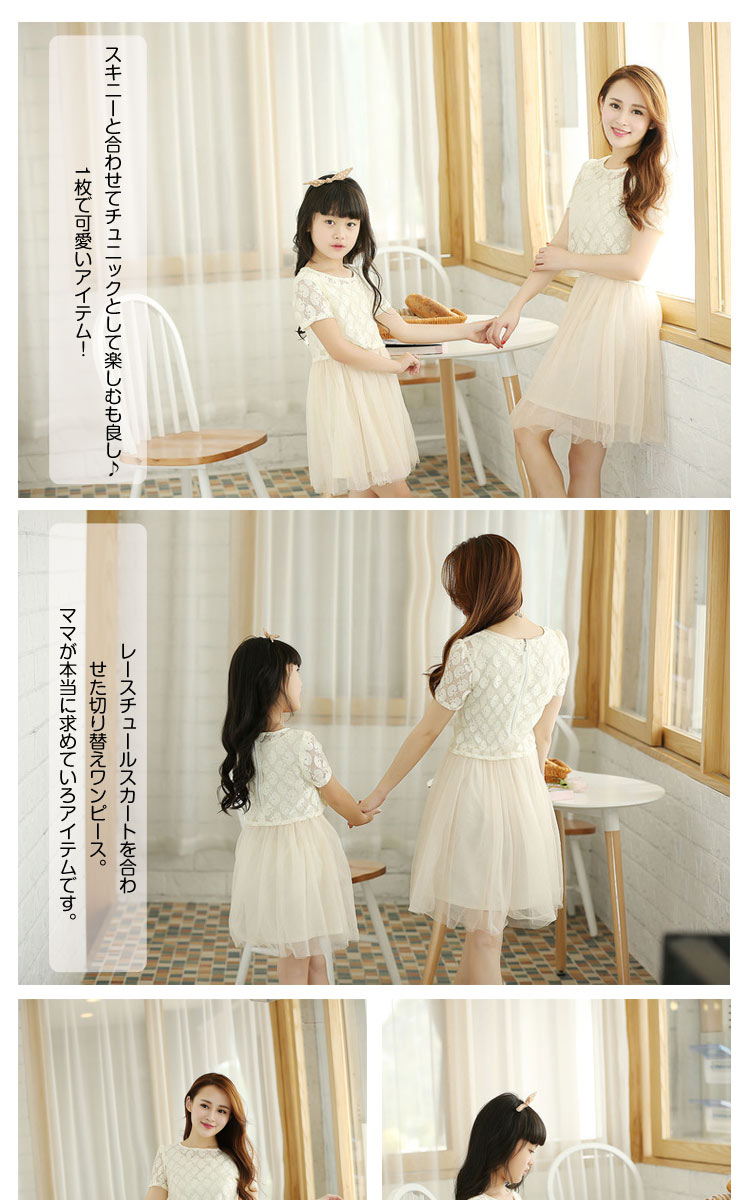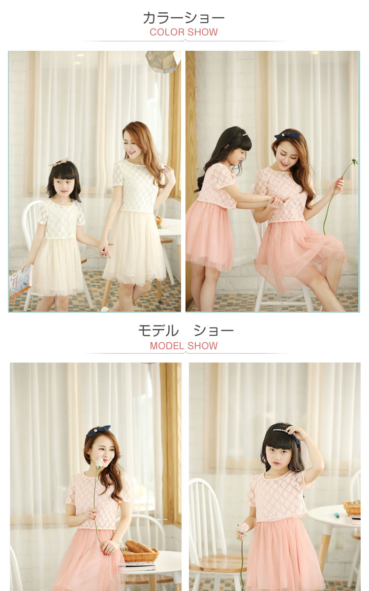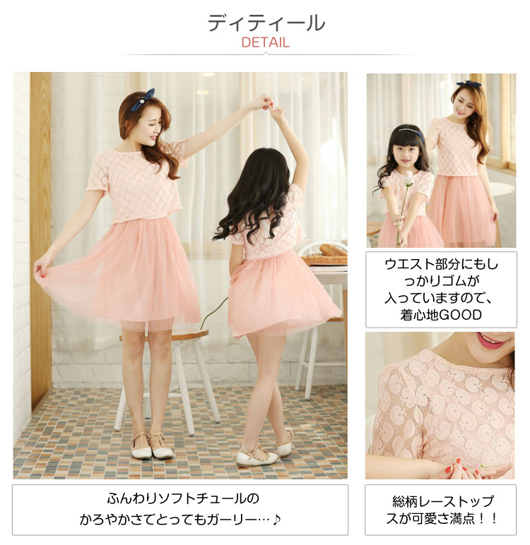 | 女性のボディラインを綺麗にあらわしてくれる?親の愛を完璧にあらわしてくれる?目立つ親子ワンピース?チュールワンピースなので、フワッと揺れるチュールがとても可愛いです。女子ならではのチュチュ素材にキュン?とくる!スキニーと合わせてチュニックとして楽しむも良し?1枚で可愛いアイテム!レース素材を使用したゴージャスなトップスと ウエストでチュールに切り替えたワンピースの2点セットです。お出かけや音楽会にもオススメのアイテムです。レースチュールスカートを合わせた切り替えワンピース。ママが本当に求めていろアイテムです。 | |