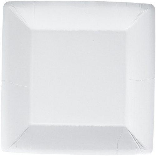 Product Description Enjoy an meal with our Eco Party Solid White Dinner Square Plates! Our plates are made with 100% recycled paper and 35% post-consumer content water-based ink. These paper plates will add a modern touch to any table setting. 0