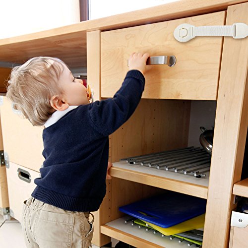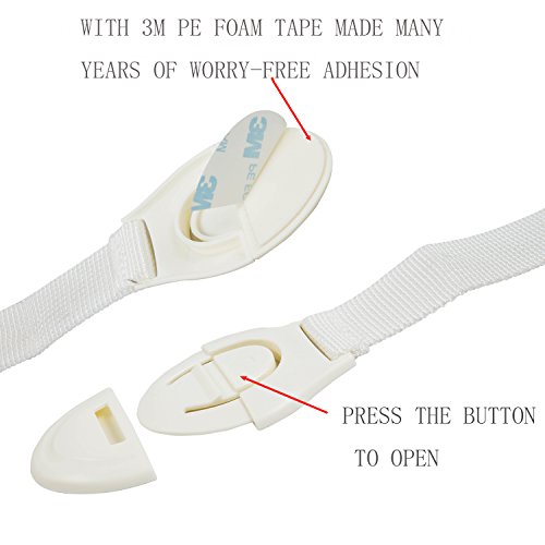 Product Description Why choose us? 1. Baby safety locks use genuine 3M adhesive without drilling or screws required, no sacraficing the beauty of your home decor 2. Integrates with home design, perfect for secure your cabinets, drawers, oven doors, dishwasher, microwave, fridge and more 3. 10 pcs in pack for different places The material at each end is hard plastic with a quality strong strap material in between. Easily to install and effective when it comes to the safety features 4.Worry-Free Warranty: If your child safety locks fail at any point, simply contact us directly for free replacement Package Quantity:10 100% Brand New Color: White Feedback: -We greatly appreciate your positive feedback -Please do not leave negative or neutral feedback without any contact -If you haven't received item in time, please contact us and we will solve it for you 0