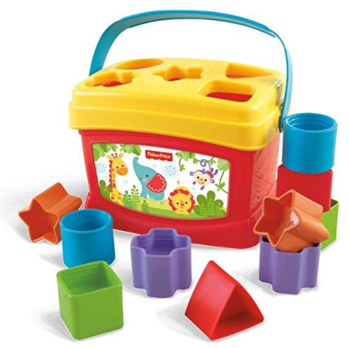 Baby’s First Blocks “grows” with baby’s developing skills! When baby’s ready for a little more challenge, the shape sorter lid fits right on top of the bucket for sorting and matching play. Five shaped openings encourage baby to match shape blocks to the openings, and then fit them through the lid to drop into the bucket. And when baby’s done, of course it’s fun to dump the bucket and do it all again!