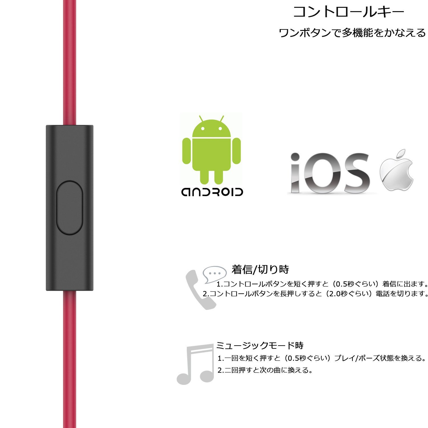 ★ Since the remote control is also built in, you can adjust the volume, operate the music and video playback, answer to the phone and end the call by pinching the code.