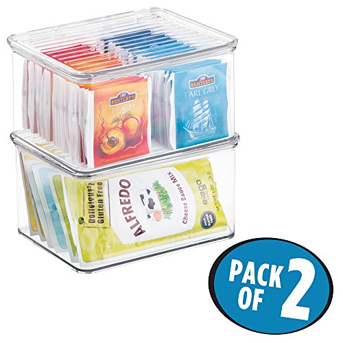 mDesign Kitchen, Pantry, Refrigerator, Freezer Storage Container with Hinged Lid - Pack of 2, 1.5-Quart, Clear