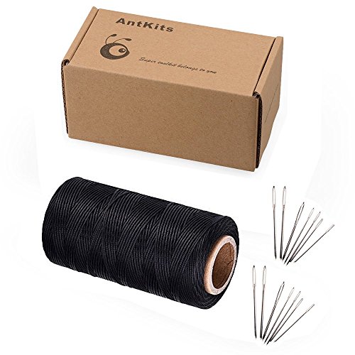 -. Title : AntKits 150D 0.8mm Flat Leather Waxed Thread Cord and 12 pcs Stitching Needles with Big Pinhole for Leather Factory or Leathercraft DIY