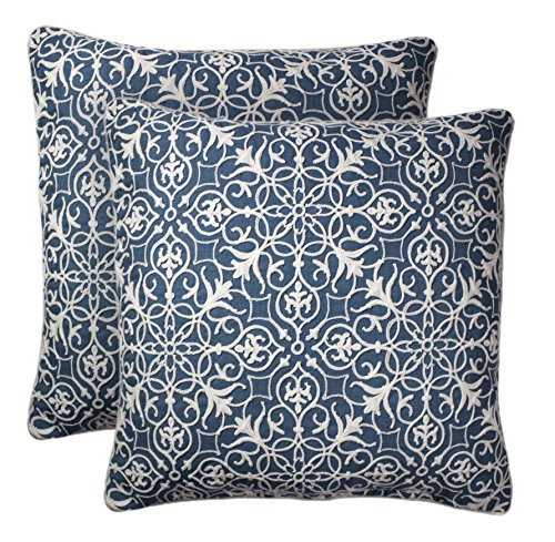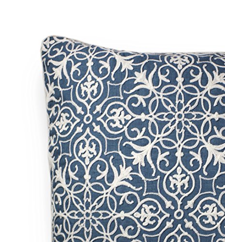 Balmont Collection Yasmine Ebroidered Accent Pillow (Set of 2), 20" x 20", Baltic Blue