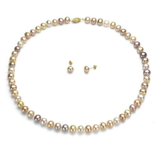 These cultured freshwater pearls are simply gorgeous, stunning and revive your style to the next level. Pearls have always been a symbol of elegance and royalty for women. This 14k Gold freshwater cultured pearl necklace is just right to enhance your beauty. Along with the necklace, you also get earrings set. The earrings compliment the necklace and help you complete the look. These stud earrings are made in button shape. The necklace and stud earrings set can be worn with any garment for any occasion. You can also give this set to a friend or relative, and make them feel special. This will surely be a gift that they will appreciate and cherish. Exquisitely designed, this necklace and earring set comes in different pearl sizes. In addition to the size, the set is also available in two metal type options of white gold and yellow gold. The set will add enhanced beauty to your overall ensemble. Uniformly designed necklace and earrings ensure that the set has a classy feel to it.Feature