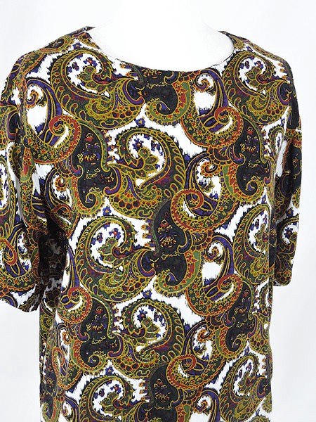 Ladies ブランド カラー白・カラフル メール便不可 コンディション★★★ 素材レーヨン 表記サイズM 実寸サイズ 着丈 61 cm 身幅 49 cm 肩幅 39 cm 袖丈 23 cm ※ウエスト・ヒップ以外は平置き採寸