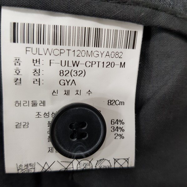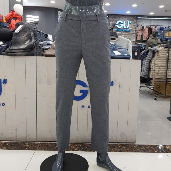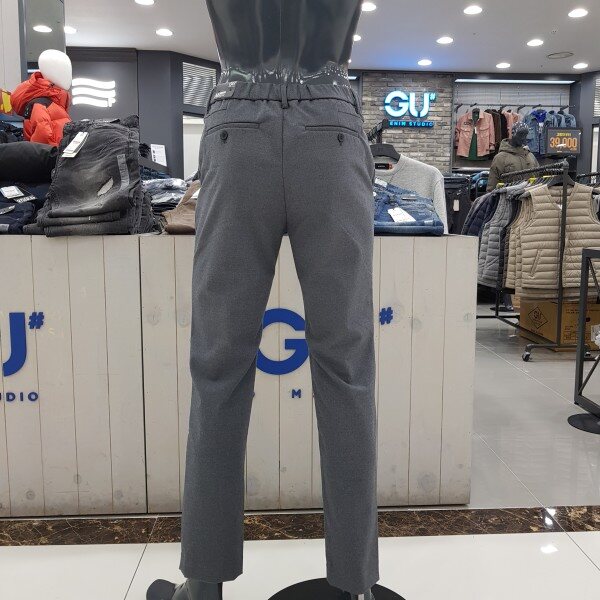 GU# 겟유즈드(남성) [기모] 밴딩 슬렉스 FULWCPT120-GYA 보온성이 좋은T/R 제모 소재를 사용. 뒷 밴딩 디테일로 편안한 착용감을 주는 테이퍼드 핏 겨울 슬랙스. 마네킨32착장.
