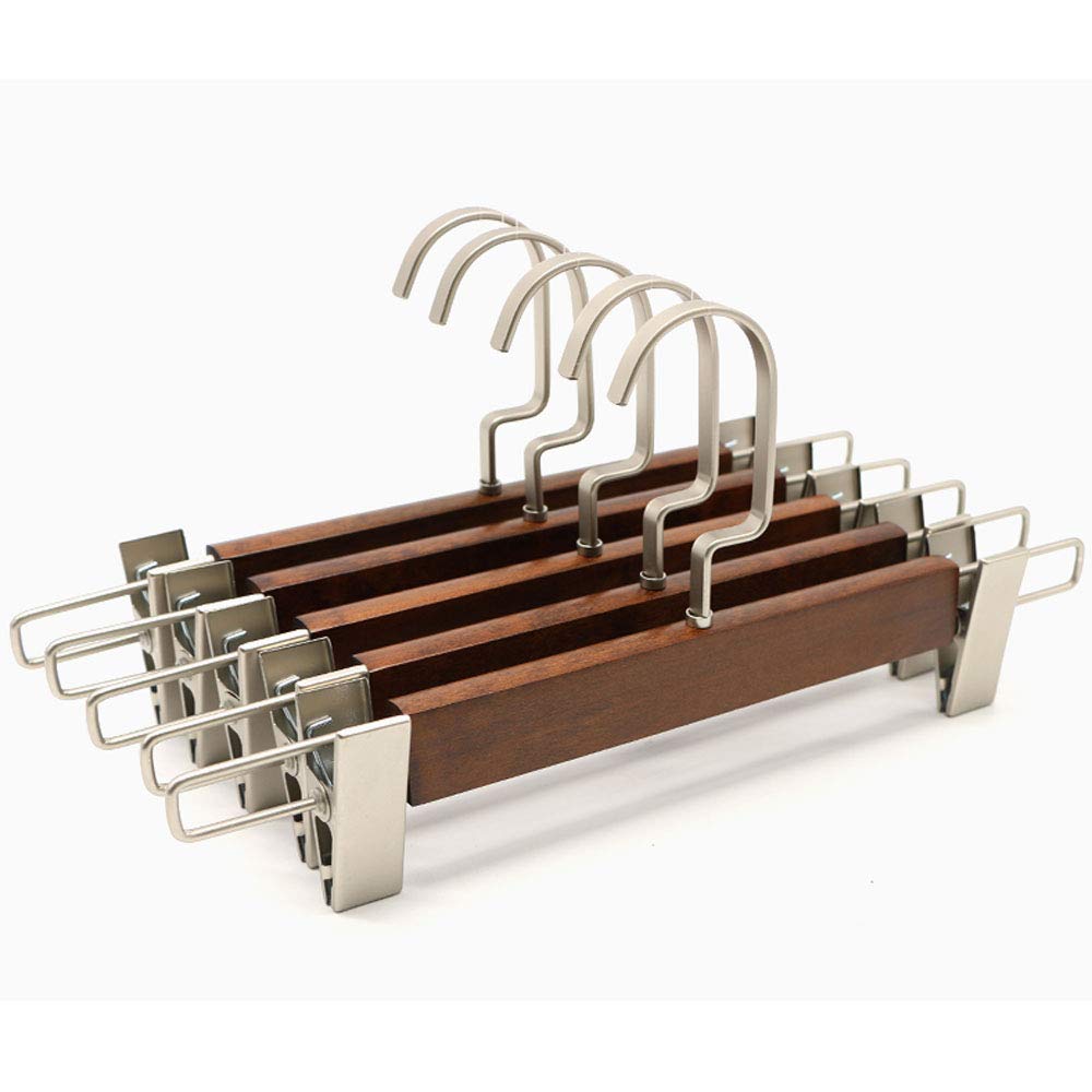 【すべ落ちない】:ボトムやスカート、マフラーなどに最適な、クリップで挟むタイプの木製ハンガーです。ステンレス製のフックはご都合によって360℃回転できます。また、耐久性と滑り落ちない機能性を兼ね備えています。
