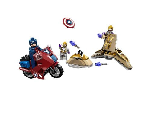 -. Binding : Toy -. Brand : -. EAN : 5702014842397 -. Feature : Includes 3 minifigures: Captain America, general, and foot soldier / Vehicles include Captain America's and general craft's avenging cycles; features include shield holder, folding wings and flick missile / Measures over 2" (6cm) high and 3" (7cm) long and general craft's measures over 2" (6cm) high and 4" (10cm) long / Foot soldiers gun stand has a missile / Speed into battle on the Avenging Cycle -. Genre : Other -. IsAdultProduct : 0 -. IsAutographed : 0 -. IsMemorabilia : 0 -. ItemPartNumber : 6865 -. Label : -. LegalDisclaimer : ATTENTION: one corner of the box is slightly crushed, but box is unopened! Price adjusted accordingly! -. Manufacturer : -. Model : 6865 -. MPN : 6865 -. PackageQuantity : 1 -. PartNumber : 6865 -. ProductGroup : Toy -. ProductTypeName : TOYS_AND_GAMES -. Publisher : -. Studio : -. Title : Captain Americas Avenging Cycle 6865 -. UPC : 673419168434 -. Warranty : No Warranty