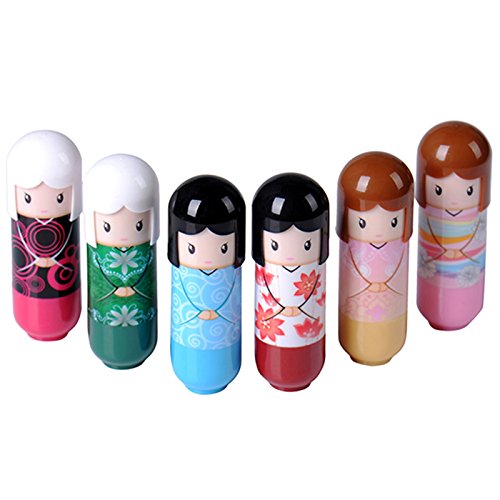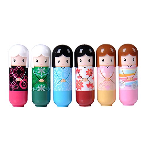 6Pcs/lot Fruit Nature Lips Balm Lovely Kimono Doll Pattern Lip Care Moisturizer Lipstick Makeup