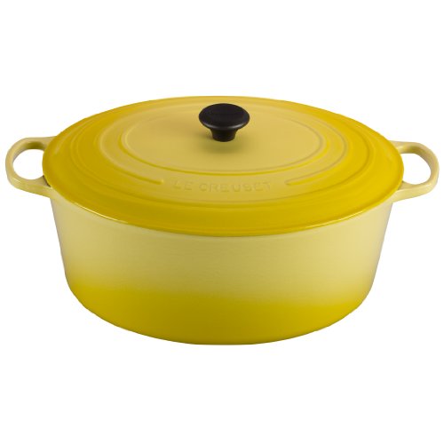 -. Feature : 45% larger handles that provide a sure grip, even with oven mitts / The superior heat distribution and retention of le creuset enameled cast iron / An advanced sand-colored interior enamel with even more resistance to wear / A larger composite knob that withstands temperatures up to 500ºF / Colorful, long-lasting exterior enamel that resists chipping and cracking