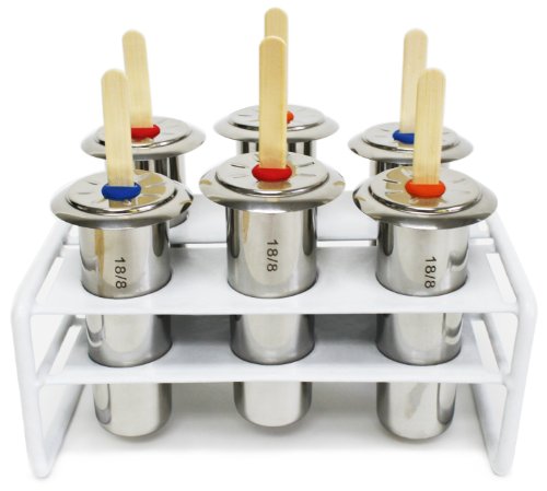 Metro 18/8 Stainless Steel Popsicle 6 Piece Mold and Rack Set - Includes 30 Re-usable Bamboo Sticks