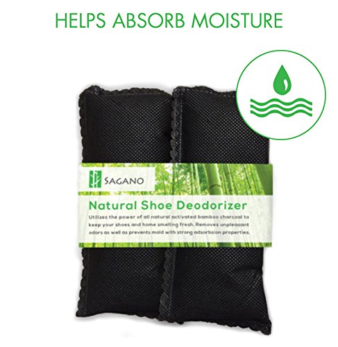 - ELIMINATE MOISTURE AND ODOR: This activated charcoal shoe odor remover works on preventing and eliminating the main cause of bad odor - moisture. By absorbing the wetness and neutralizing the air humidity in your shoes, gloves, gym bags, boots, luggage, and other smelly items, odor-causing microbes have no place to survive. Therefore your shoes will stay clean and fresh all the time.