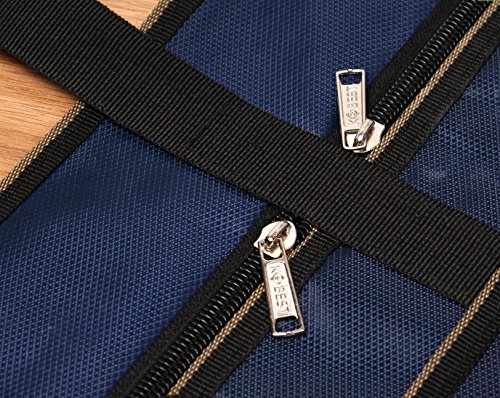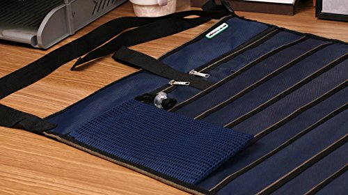-. Feature : Made of premium sturdy oxford fabric, waterproof and tear-resistant / Purpose: Space saving help you get more organized and tidy on your desk / Appearance: makes your office more stylish and attractive / Feature: it holds 12 pockets, 8 large pockets for storing documents books papers, 2 small pockets with a zipper closure for pens markers and anything you would like to put, 1 mesh pocket behind and 1 bottle holder