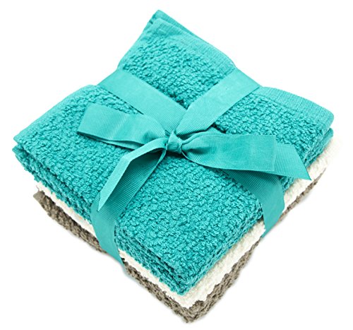 - Title : 8 Pack Terry Popcorn Weave Wash Cloths (12x12") - Teal, Cream & Taupe