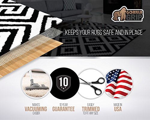 Tired of straightening your area rugs day after day. Your money and time is valuable. Try the BEST RUG PAD you will ever own - The GORILLA GRIP non-slip rug pad for hard surfaces. What does a Gorilla have to do with your rugs? Well if you had a Gorilla Grip rug pad you would know what thrilled customers worldwide love about our products.
