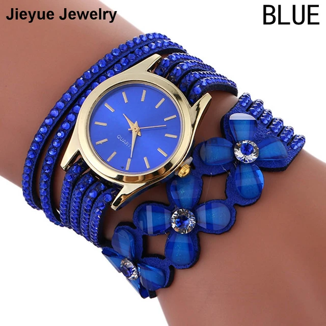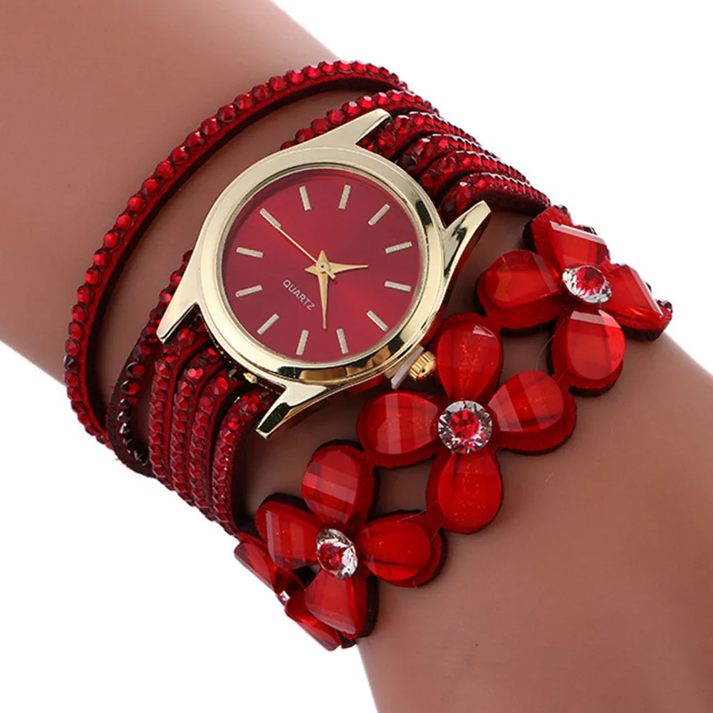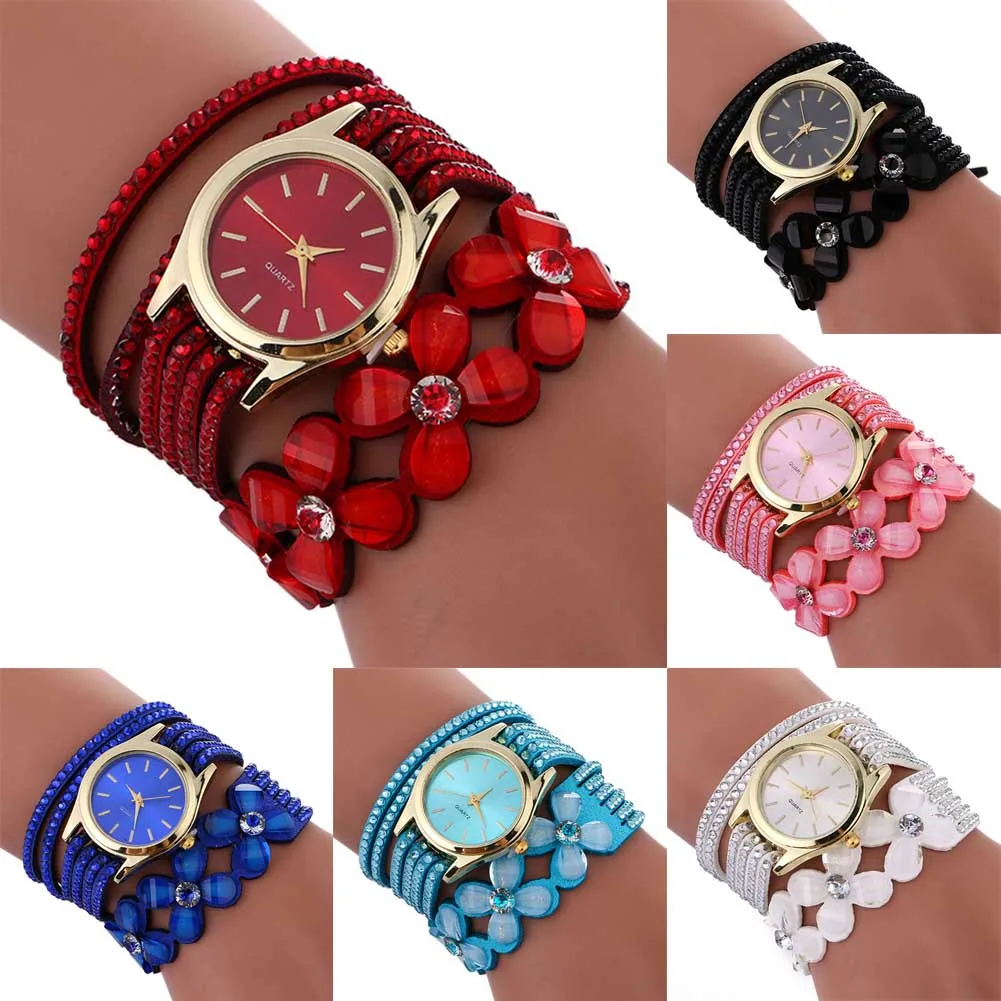 | [해외] 최신! 여성의 럭셔리 브랜드 모조 다이아몬드 아날로그 석영 멀티 레이어 꽃 잎 팔찌 시계 masculino montre femm |