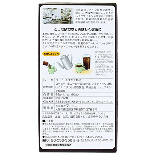Studio : FINE Publisher : FINE Binding : Health and Beauty Product Description FINE MetaboTM Coffee is created and manufactured by FINE Company of Japan who has been operating for 35 years. The product is the best seller in Japan, America, Korea, Hong Kong and Taiwan.