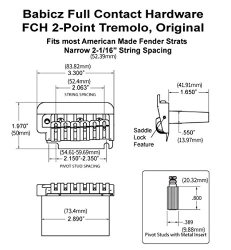 Babicz FCH2PTGD Full Contact Hardware, 2-Point Strat Tremolo, Gold