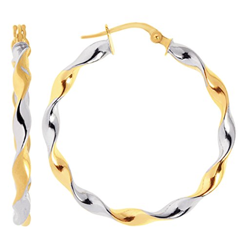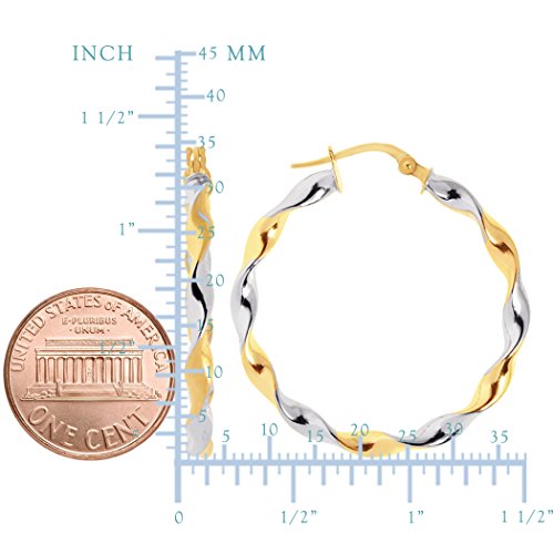 Classic round shape tube hoop earrings stay securely in place with snap-post closures. Made with 14K high polished twisted cable 2 tone gold. Perfect for spicing up your everyday look. Earrings come in a gift box.Feature