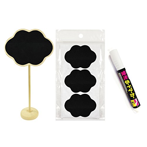 • Sets available in different shapes. Comes with 8 chalkboard stands with base, 8 chalkboard stickers, and 1 chalk marker.