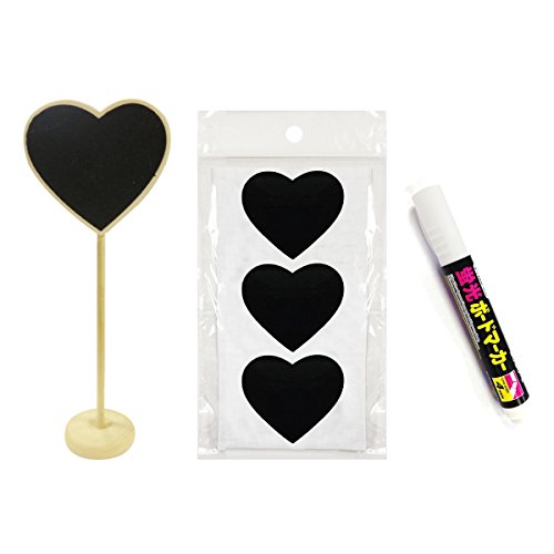 Wrapables Set of 8 Chalkboard Stands with Chalkboard Stickers and Chalk Marker for Labeling, Gift Tags, Wedding and Party Table Markers, and Plant Markers, 3" x 2.25" Heart