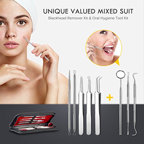 - 【8-IN-1 MULTIFUNCTIONAL TOOL SET】: A unique daily care set includes blackhead removal kit with 5 tools and dental hygiene tool set with 3 tools, meet your different needs of both facial care and oral care in daily life