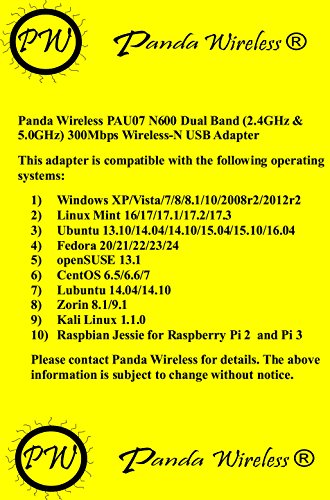 Panda N600 Dual Band (2.4GHz and 5.0GHz) 300Mbps Wireless N USB Adapter - Windows Vista/7/8/8.1/10, Mint, Ubuntu, openSUSE, Fedora, CentOS, Zorin, Kali Linux and Raspbian Jessie