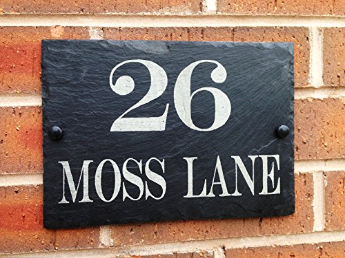 -. Brand : Slateworks -. Color : BLACK -. EAN : 0700461069942 -. Feature : Beautiful riven edged slate house signs to enhance the appearance of your home. / Manufactured from natural slate by Master Craftsmen / Surface engraved with laser technology, supplied with screws, caps and pre-drilled holes for easy fixing / More sizes available - up to A3 40x30cms - please see our other products / After purchasing your sign send seller an Amazon message with details of what you would like engraved (e.g. I would like 35 Albert Square in Harrington font on 2 lines please) -. Label : Slateworks -. Manufacturer : Slateworks -. MPN : 2515 -. PackageQuantity : 1 -. PartNumber : 2515 -. ProductGroup : Lawn & Patio -. ProductTypeName : OUTDOOR_LIVING -. Publisher : Slateworks -. Studio : Slateworks -. Title : Slate House Sign Address Door Number House Plaque 15x25cms, 6 inch x 10 inch (Free postage) -. UPC : 700461069942