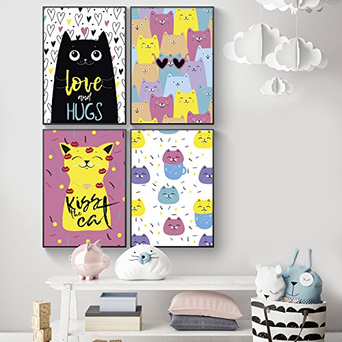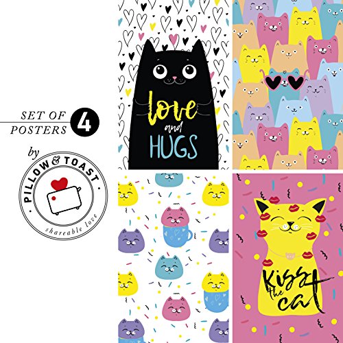 SET OF 4 COLORFUL KAWAII POSTERS - Funky, fun and creative hand-drawn cat posters that will lighten up any room and add the perfect cute / pastel feel any kawaii room needs. Every happy cat in our posters will make it feel like your cat is always there walking between your legs. Aww purry kitties! It works as a perfect birthday, anniversary or surprise gift and as a homage for that special kitten who has a special place in your heart!