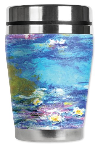 Mugzie Monet Irises II "Mini" Travel Mug with Insulated Wetsuit Cover, 12 oz, Black