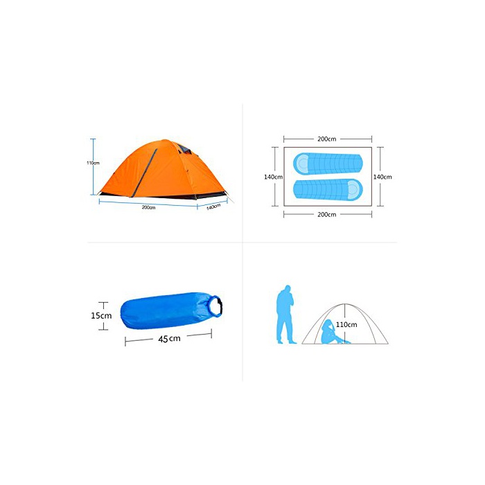 AZBRO HUI LINGYANG 아웃도어 원터치 텐트 2명 용 투어링(touring) 텐트 2 층구조 고환기성 방우방풍 방재 접이식 간이 텐트 자외선 컷 200*150*110CM 2kg