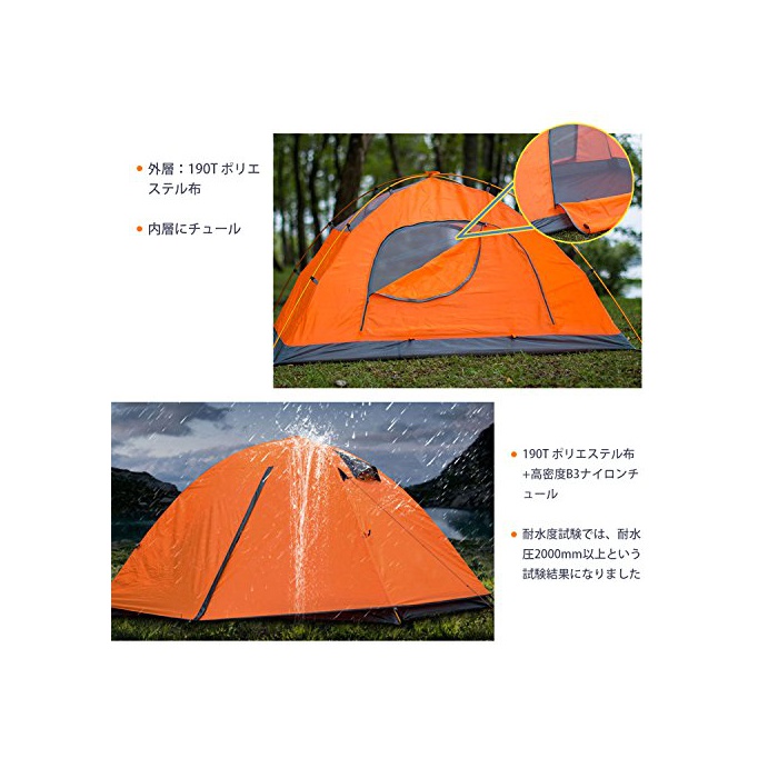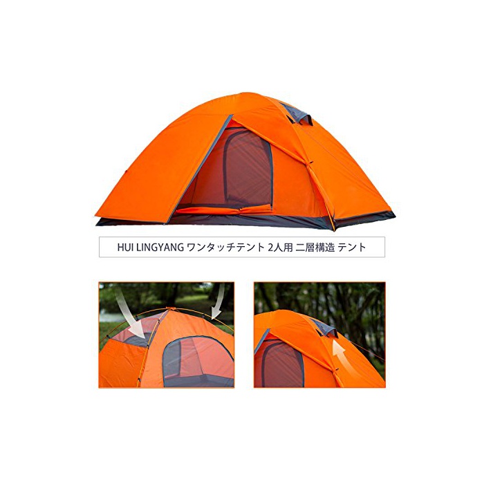 원본상품명: HUI LINGYANG アウトドア ワンタッチテント 2人用 ツ?リングテント 二層構造 高通?性 防雨防風防災 折りたたみ 簡易テント 紫外線カット 200*150*110CM 2kg